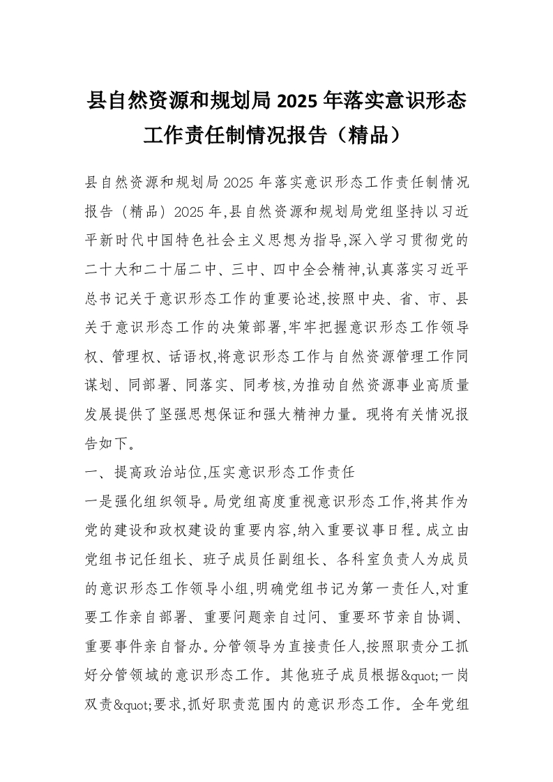 县自然资源和规划局2025年落实意识形态工作责任制情况报告(精品)