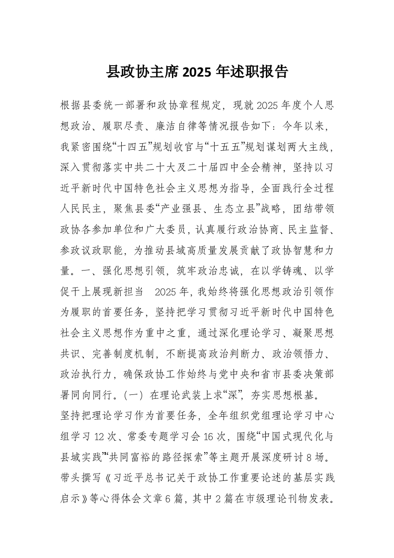 首页学习提升县政协主席2025年述职报告
