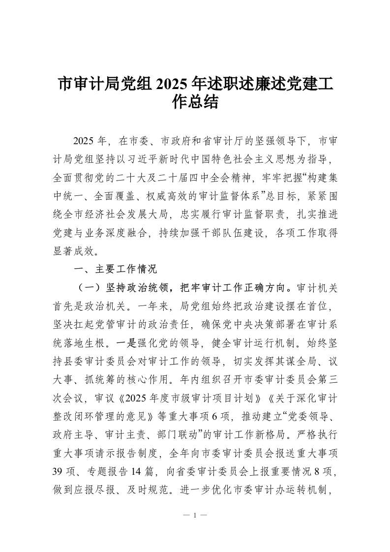 首页写作素材市审计局党组2025年述职述廉述党建工作总结