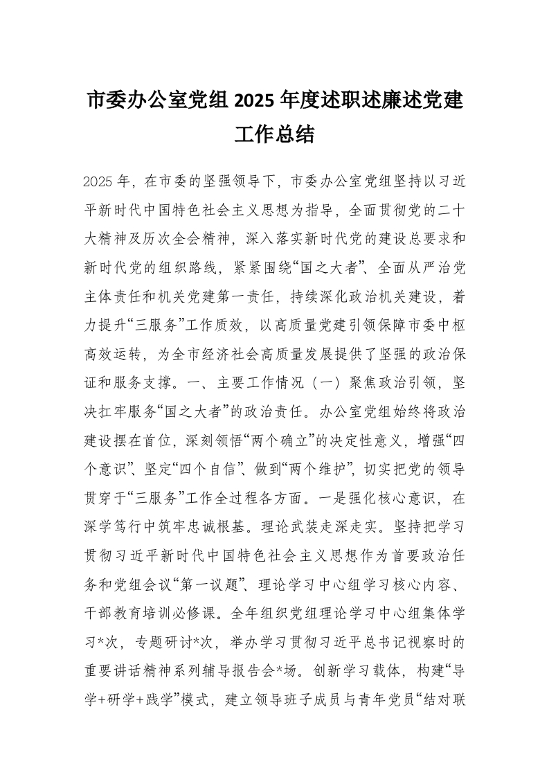 市委办公室党组2025年度述职述廉述党建工作总结