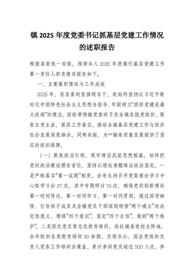 首页精选范文镇2025年度党委书记抓基层党建工作情况的述职报告