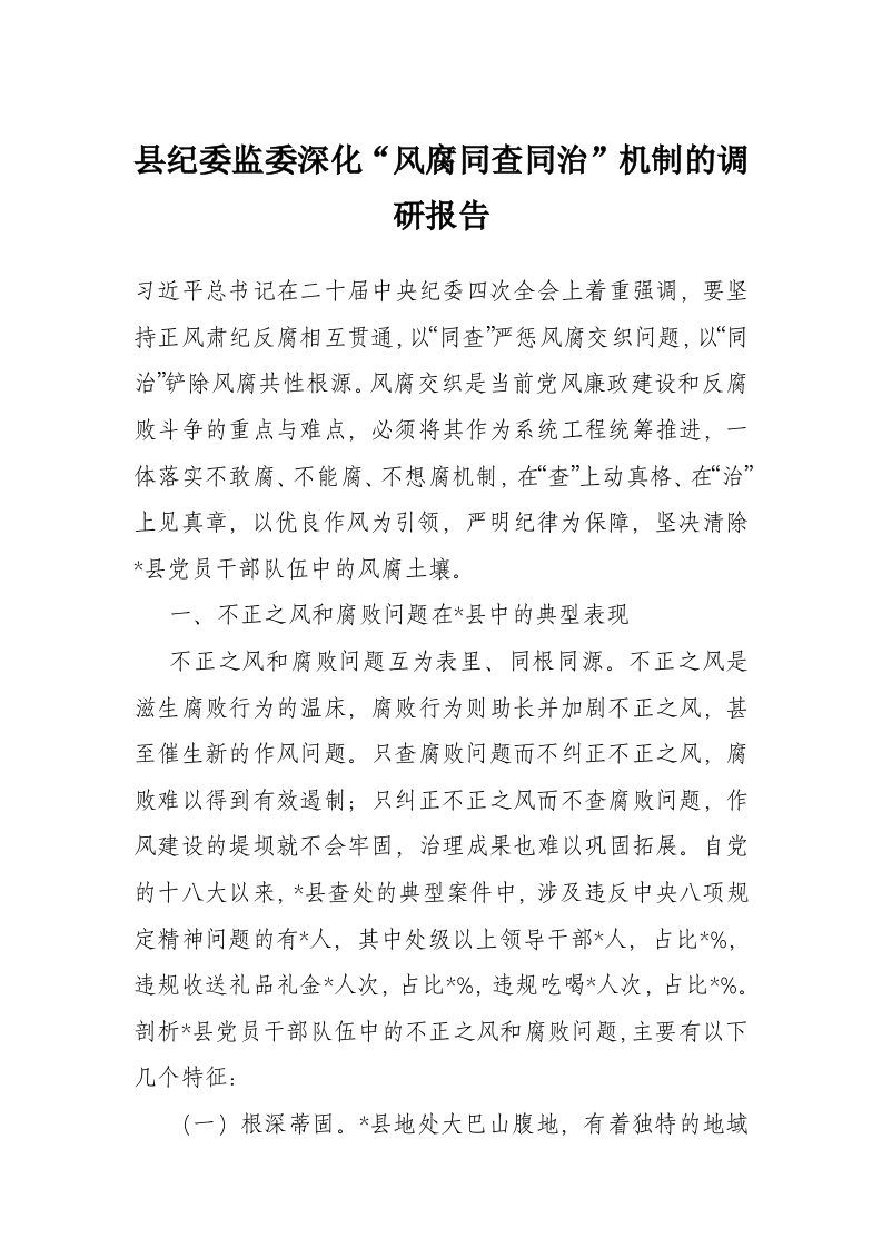 县纪委监委深化“风腐同查同治”机制的调研报告