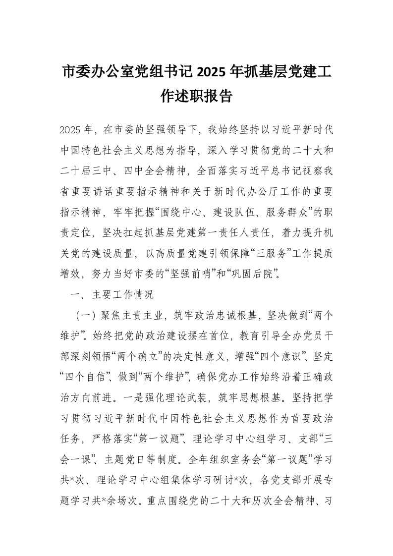 首页精选范文市委办公室党组书记2025年抓基层党建工作述职报告