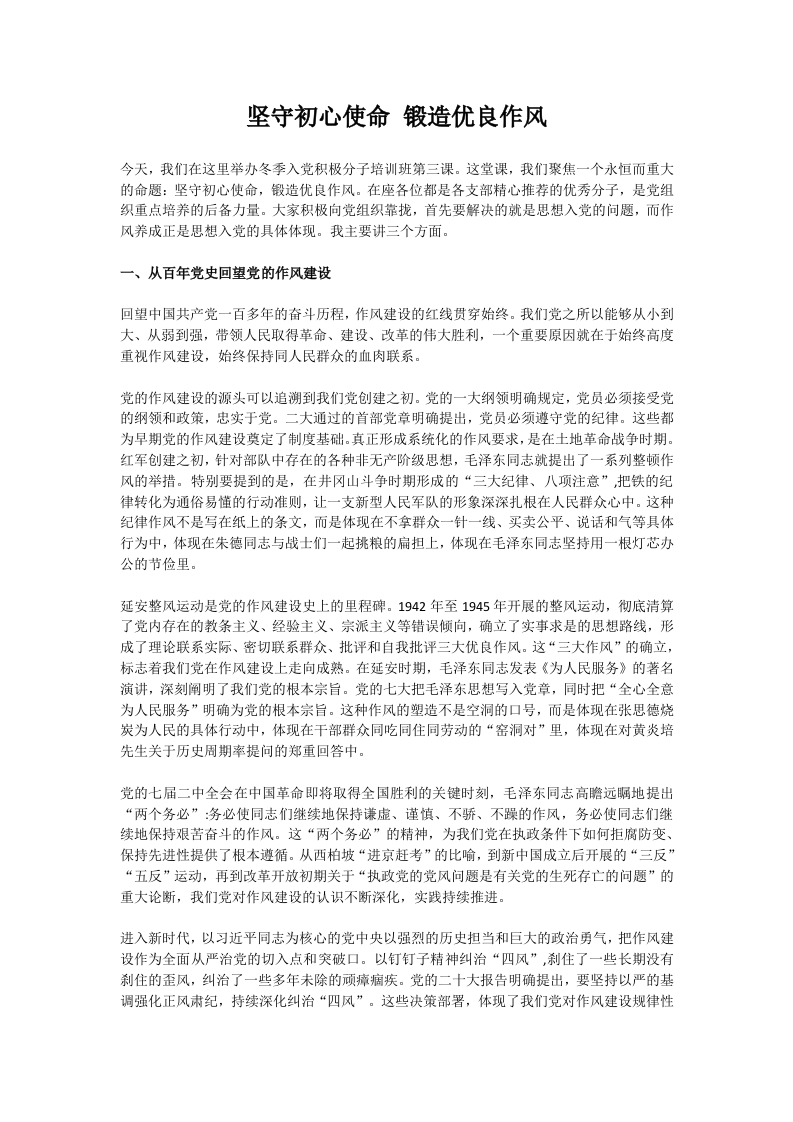 红色精美坚守初心使命锻造优良作风PPT作风建设主题党课(讲稿)