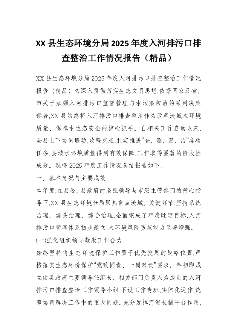 XX县生态环境分局2025年度入河排污口排查整治工作情况报告(精品)
