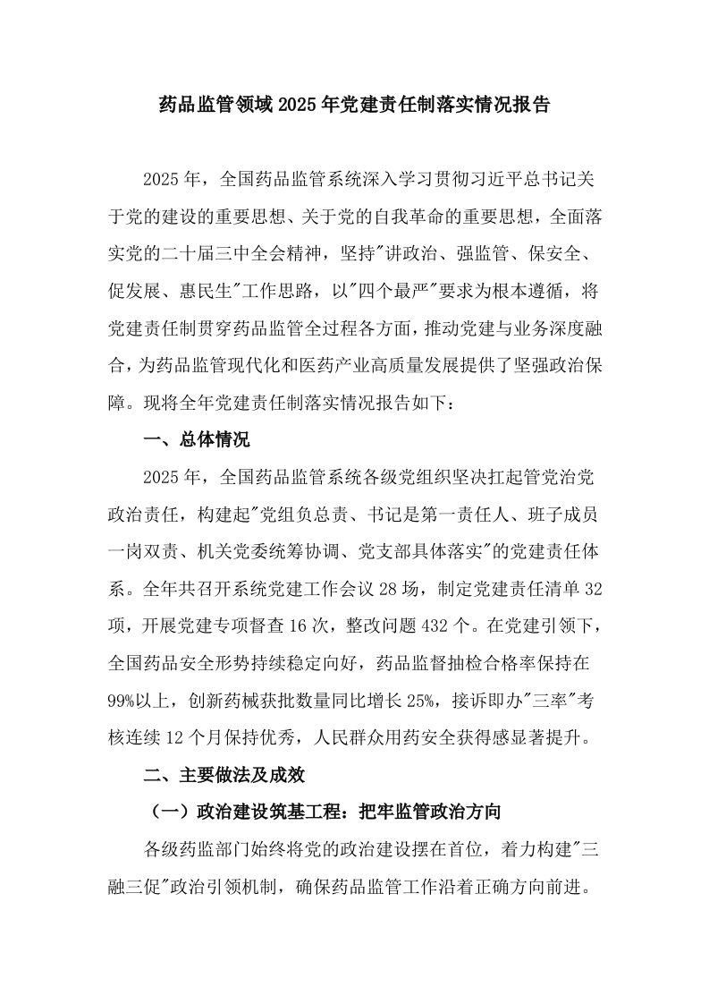 首页精选范文药品监管领域2025年党建责任制落实情况报告