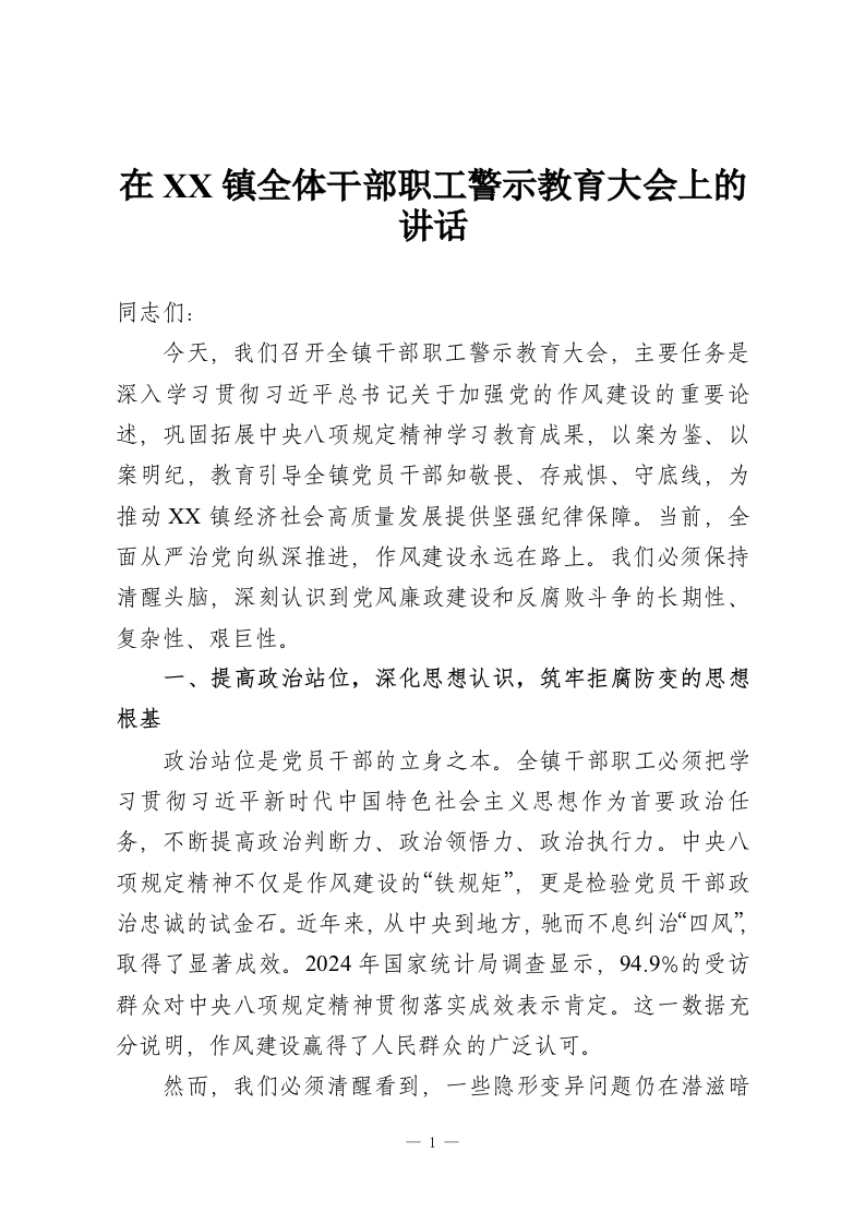 首页精选范文在XX镇全体干部职工警示教育大会上的讲话