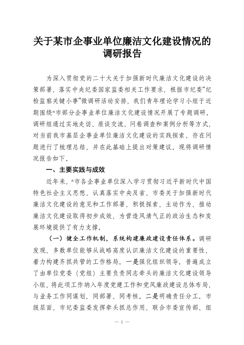 关于某市企事业单位廉洁文化建设情况的调研报告