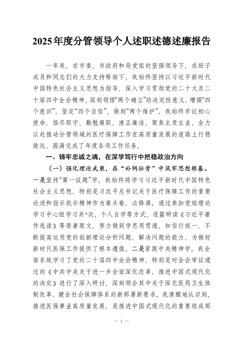 首页精选范文2025年度分管领导个人述职述德述廉报告