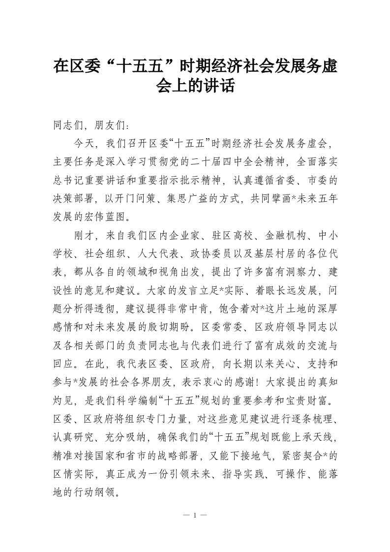 在区委“十五五”时期经济社会发展务虚会上的讲话