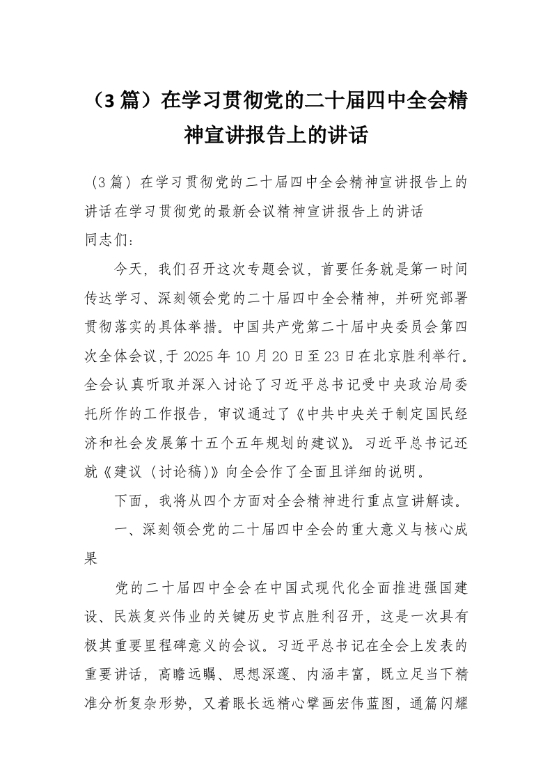 (3篇)在学习贯彻党的二十届四中***精神宣讲报告上的讲话