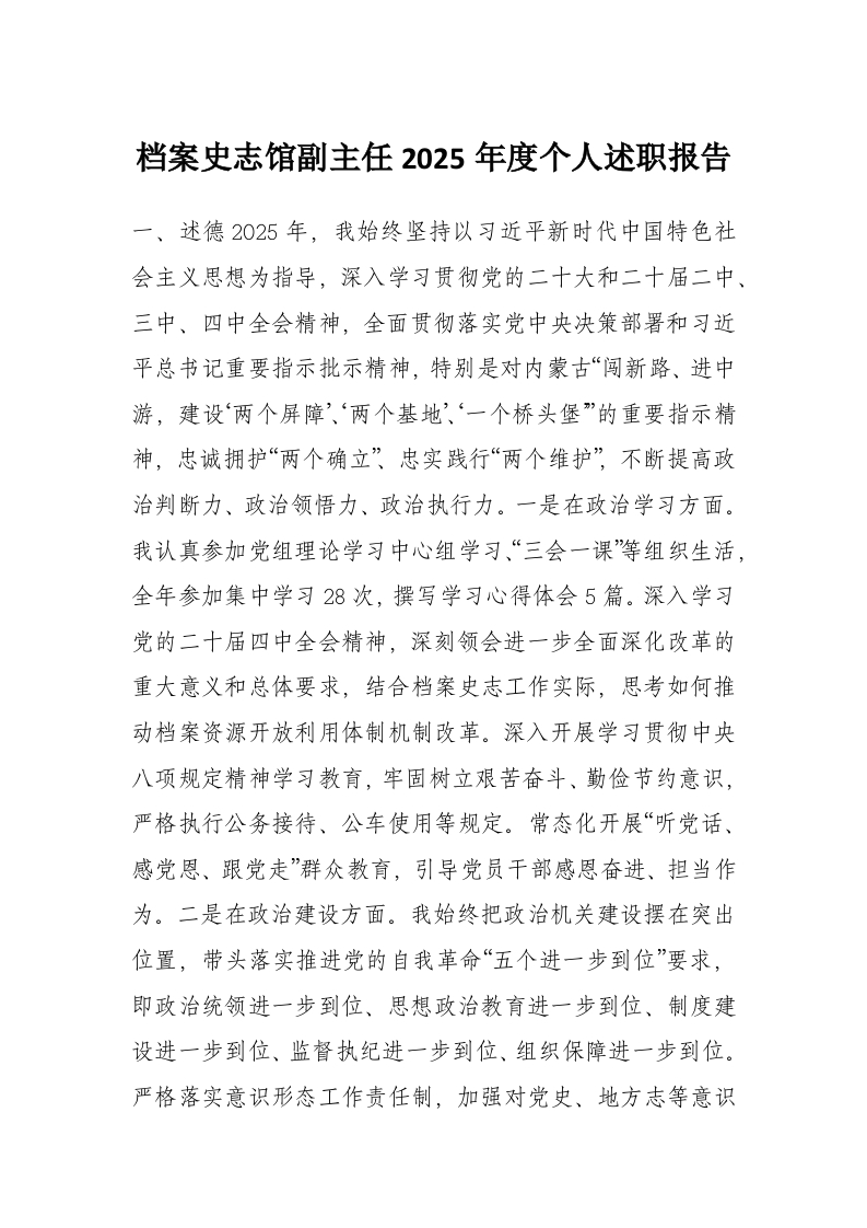 首页写作素材档案史志馆副主任2025年度个人述职报告
