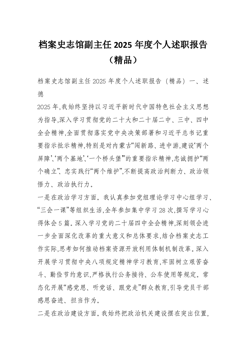 首页写作素材档案史志馆副主任2025年度个人述职报告(精品)