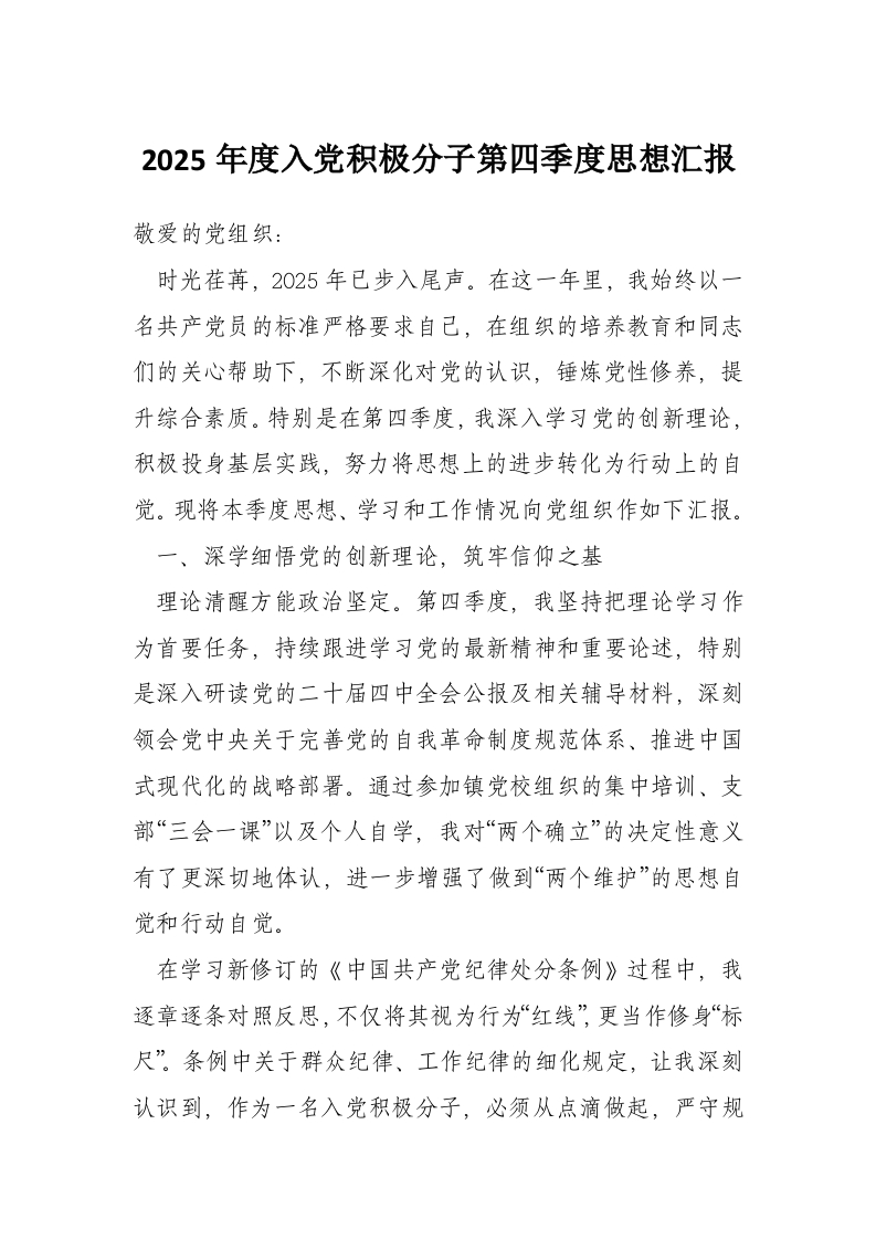 首页写作素材2025年度入党积极分子第四季度思想汇报