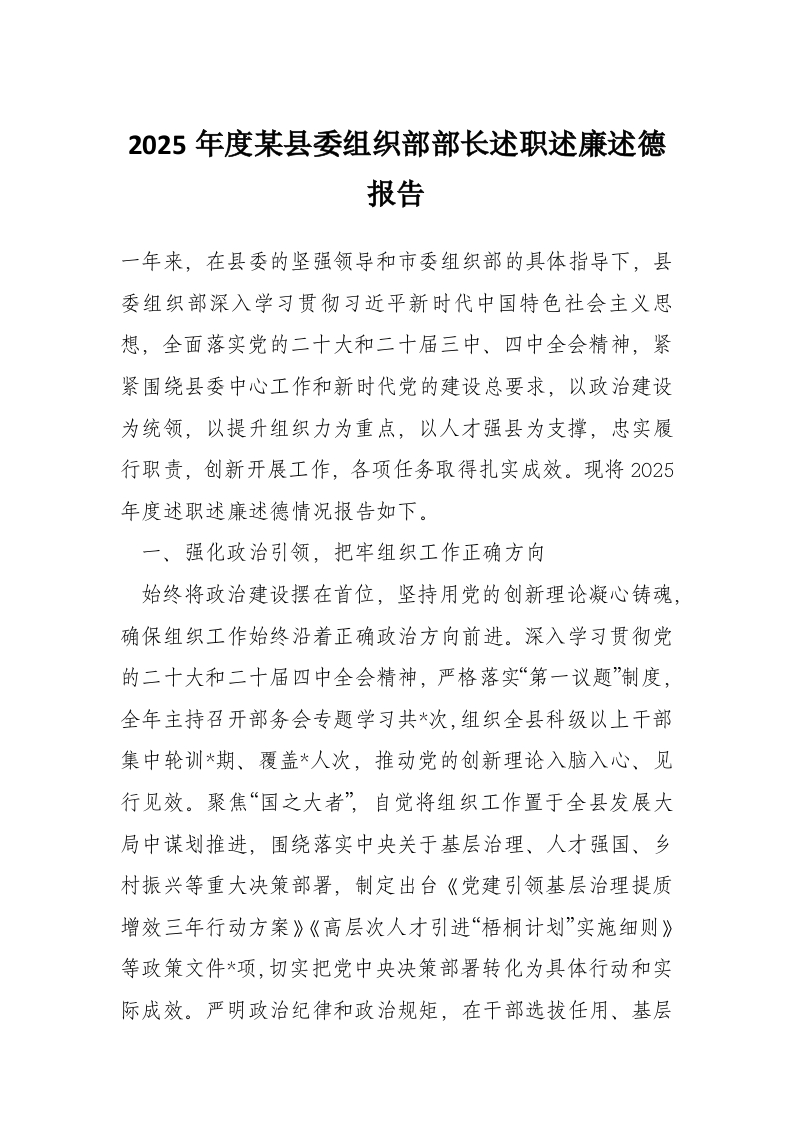 首页写作素材2025年度某县委组织部部长述职述廉述德报告