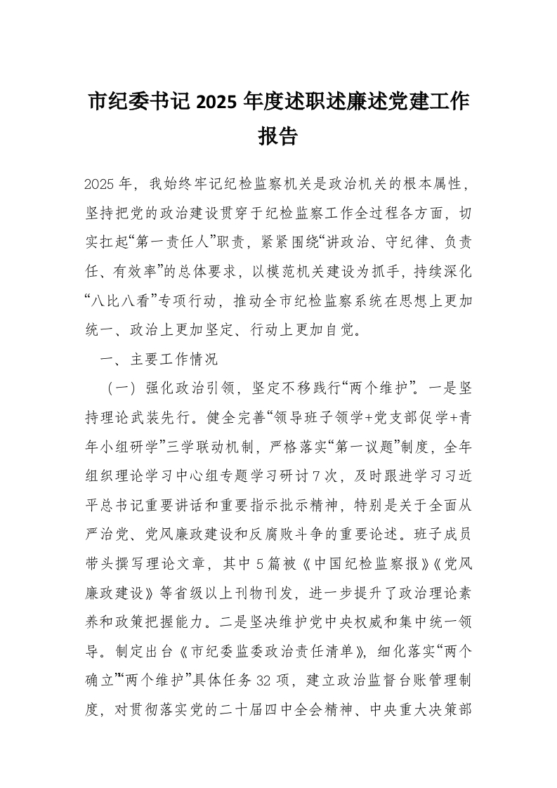 首页材料汇编市纪委书记2025年度述职述廉述党建工作报告