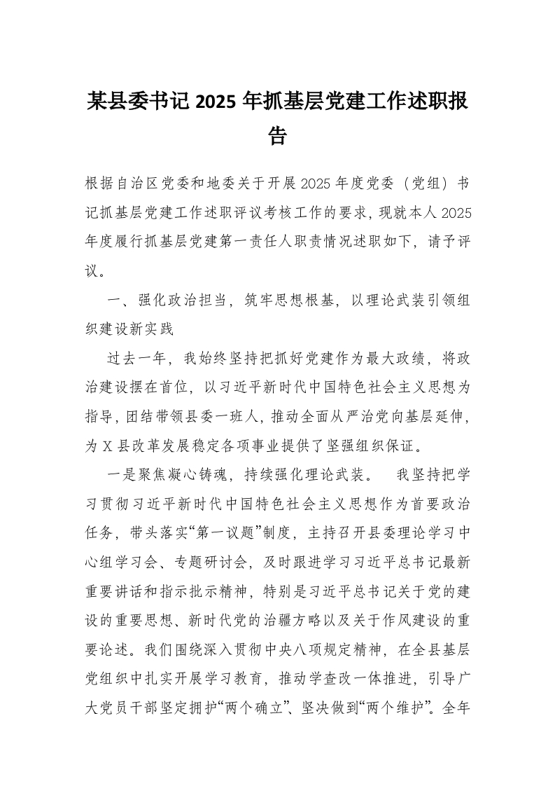 首页材料汇编某县委书记2025年抓基层党建工作述职报告