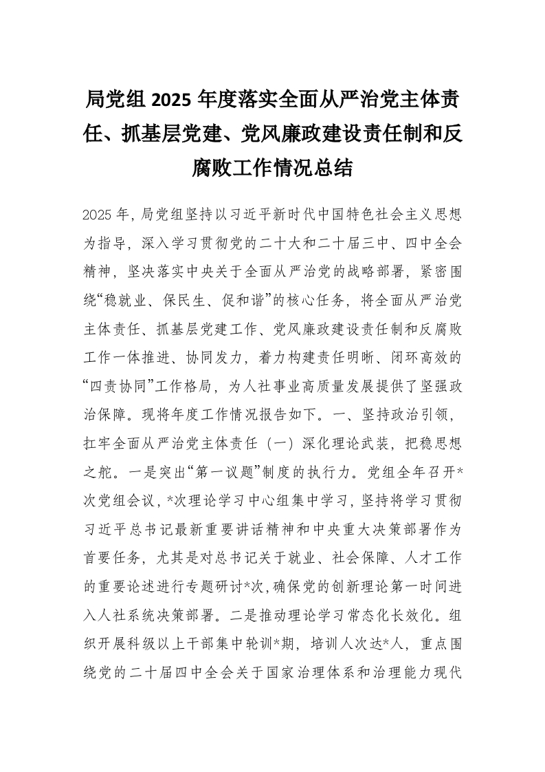 局党组2025年度落实全面从严治党主体责任、抓基层党建、党风廉政建设责任制和反腐败工作情况总结_1