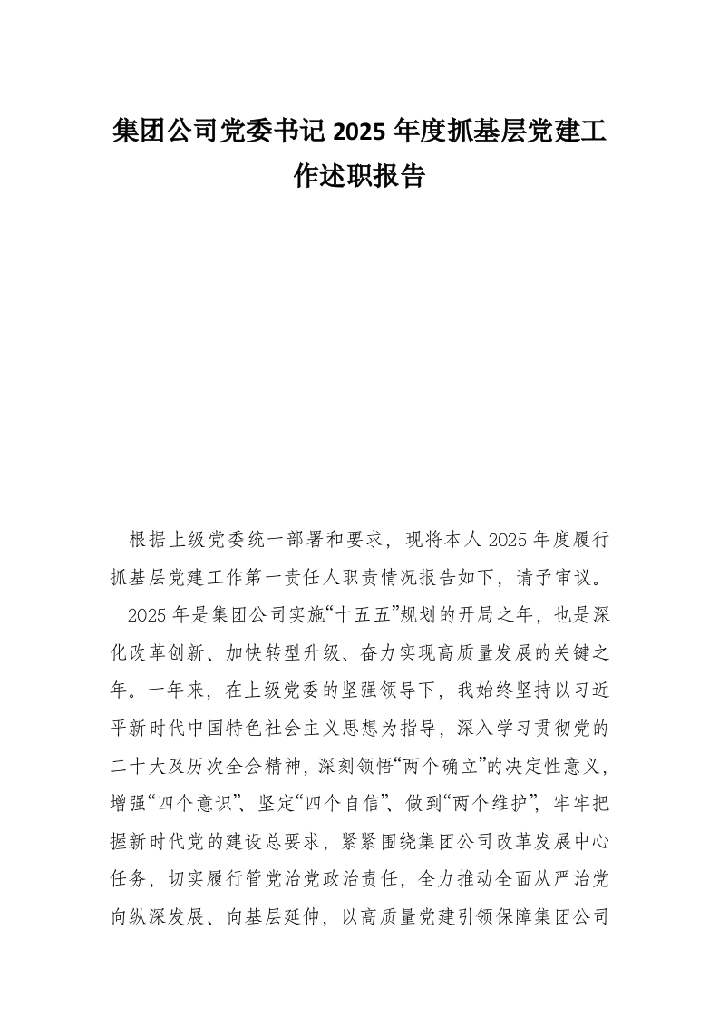 首页材料汇编集团公司党委书记2025年度抓基层党建工作述职报告