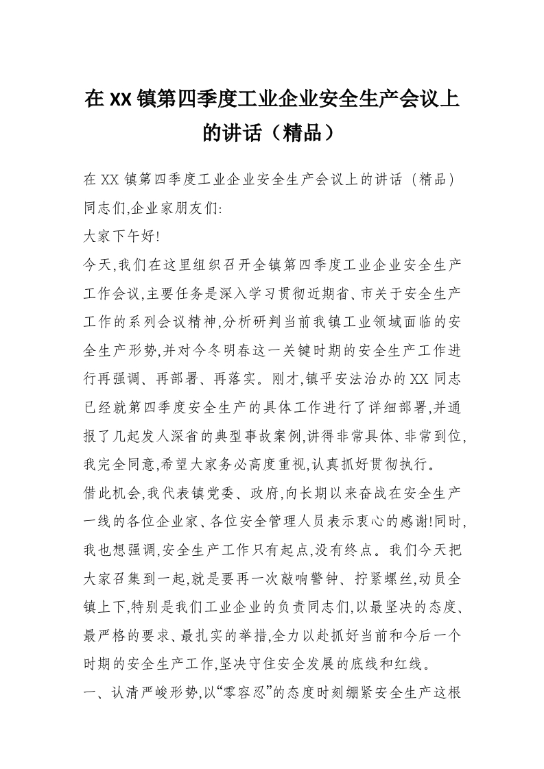 在XX镇第四季度工业企业安全生产会议上的讲话(精品)