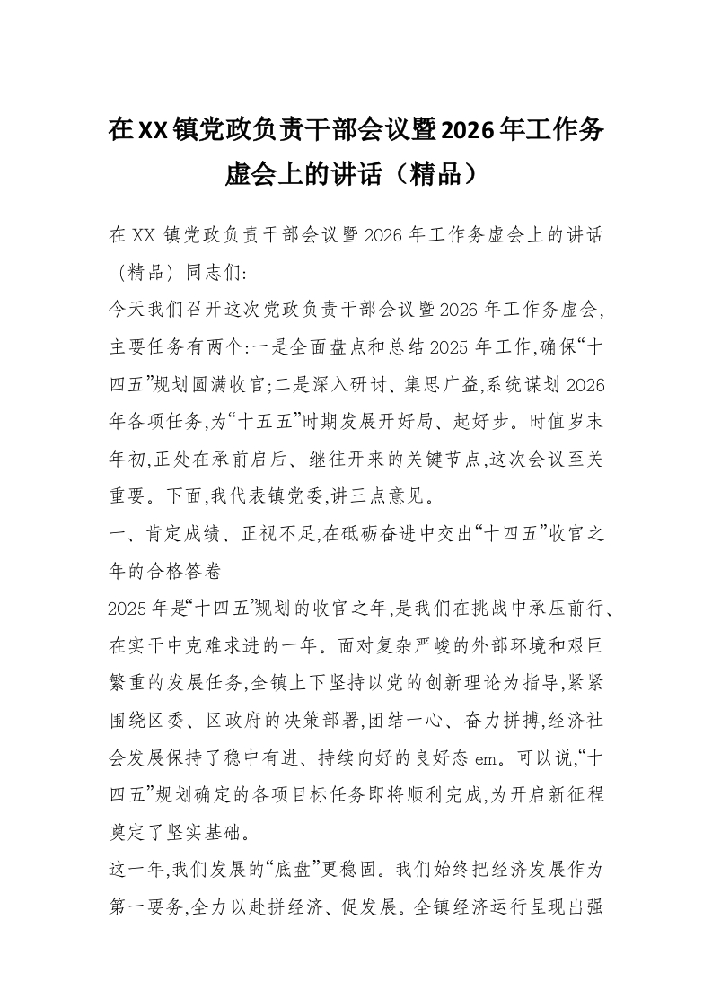 在XX镇党政负责干部会议暨2026年工作务虚会上的讲话(精品)