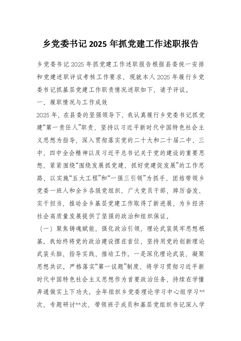 首页材料汇编乡党委书记2025年抓党建工作述职报告