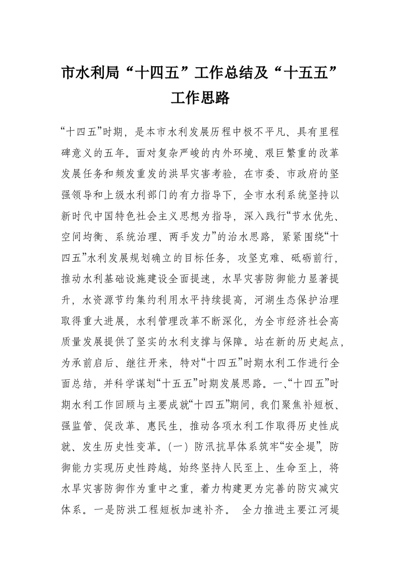 首页材料汇编市水利局“十四五”工作总结及“十五五”工作思路