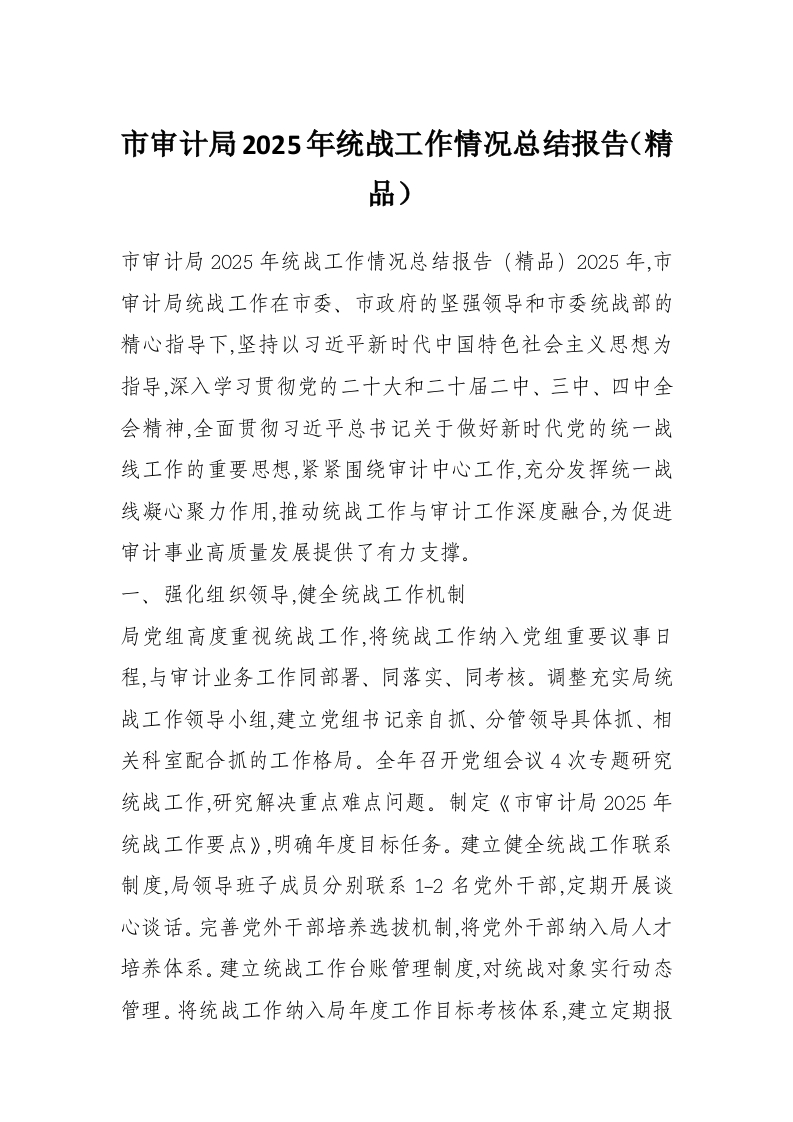首页材料汇编市审计局2025年统战工作情况总结报告(精品)