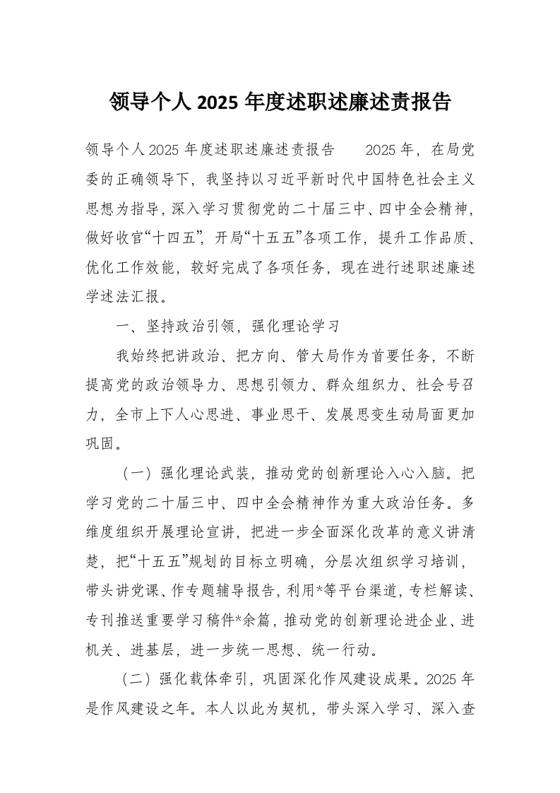 首页讲课讲稿领导个人2025年度述职述廉述责报告