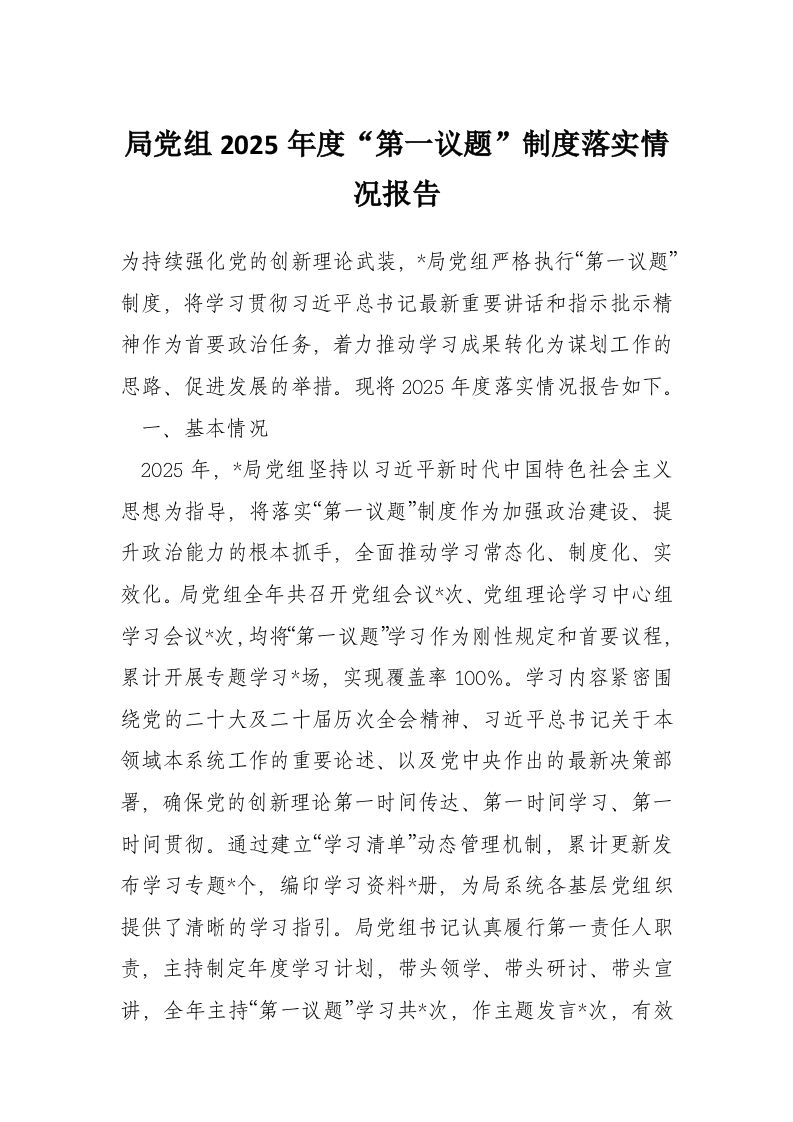 首页讲课讲稿局党组2025年度“第一议题”制度落实情况报告