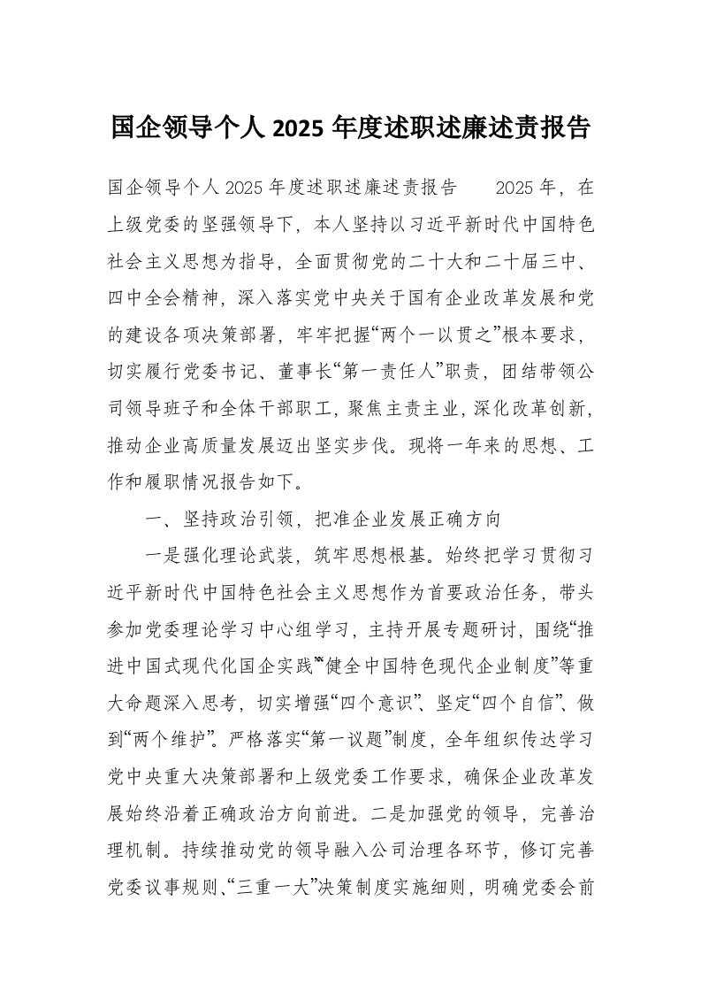 首页讲课讲稿国企领导个人2025年度述职述廉述责报告