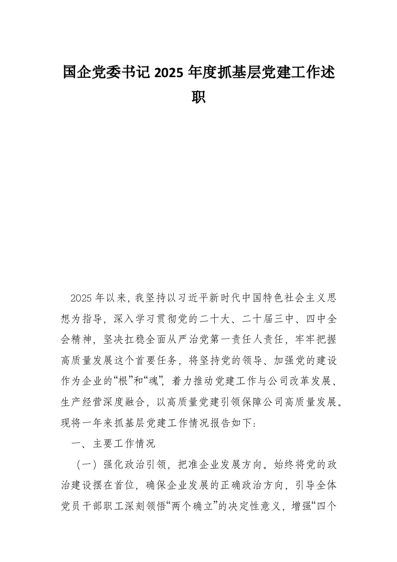 首页讲课讲稿国企党委书记2025年度抓基层党建工作述职