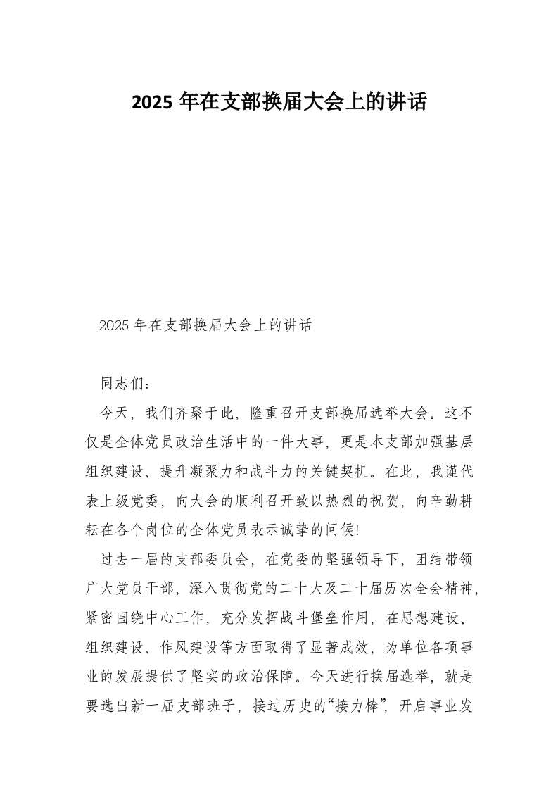 首页讲课讲稿2025年在支部换届大会上的讲话