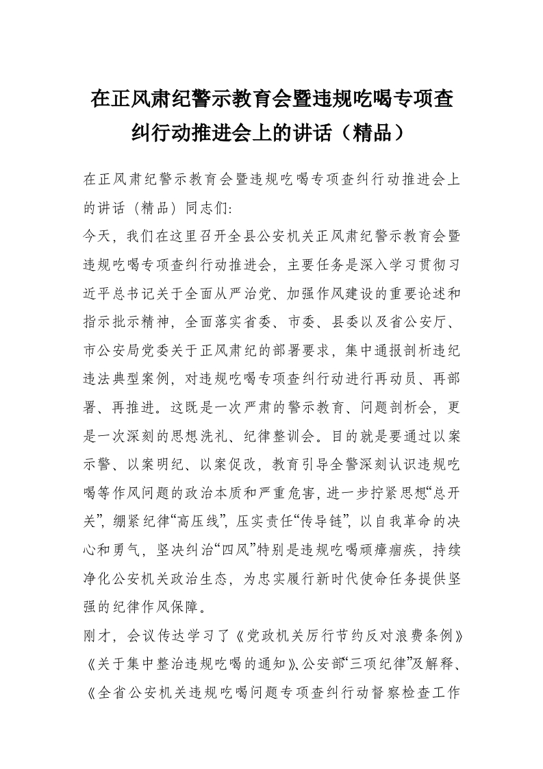 在正风肃纪警示教育会暨违规吃喝专项查纠行动推进会上的讲话(精品)