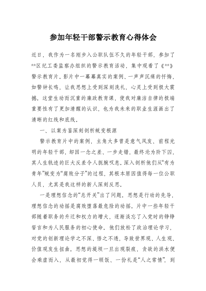 参加年轻干部警示教育心得体会