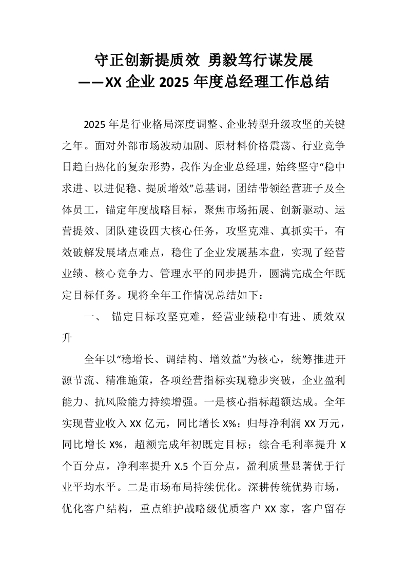 首页精选范文守正创新提质效 勇毅笃行谋发展——XX企业2025年度总经理工作总结