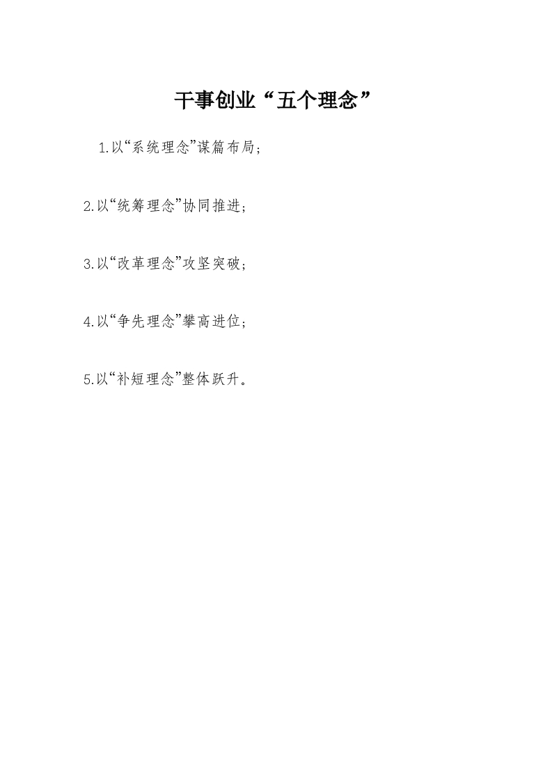 干事创业“五个理念”