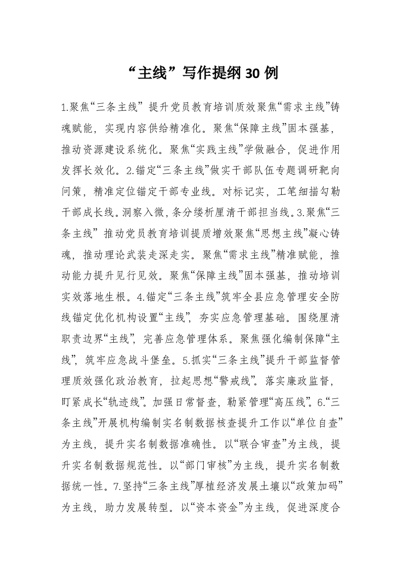 “主线”写作提纲30例