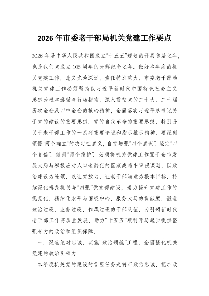 首页材料汇编2026年市委老干部局机关党建工作要点