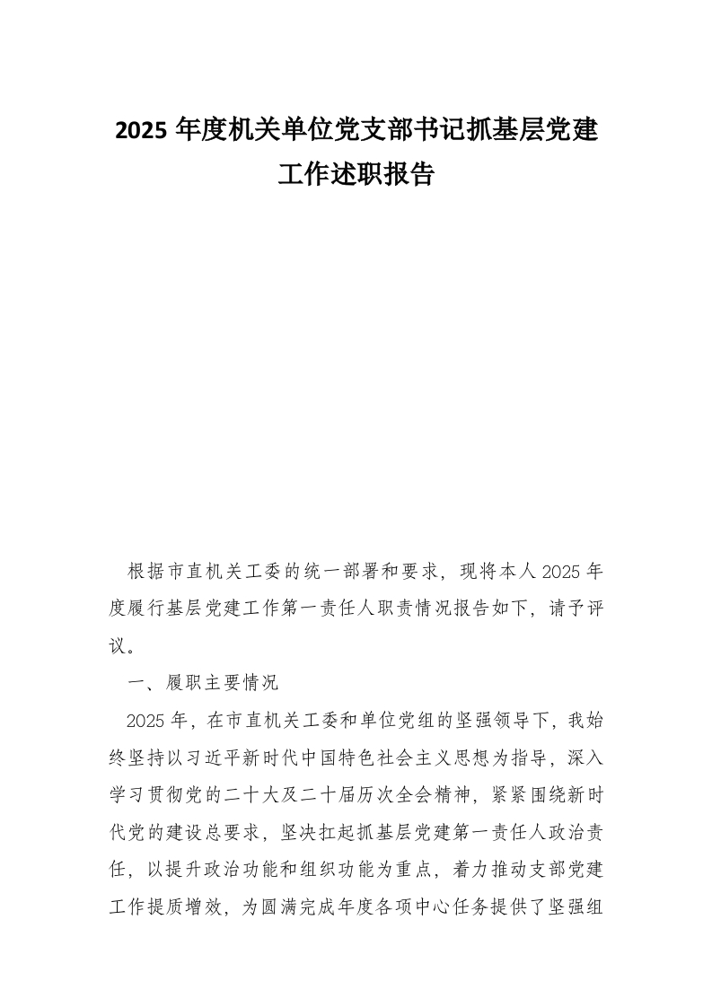 2025年度机关单位党支部书记抓基层党建工作述职报告