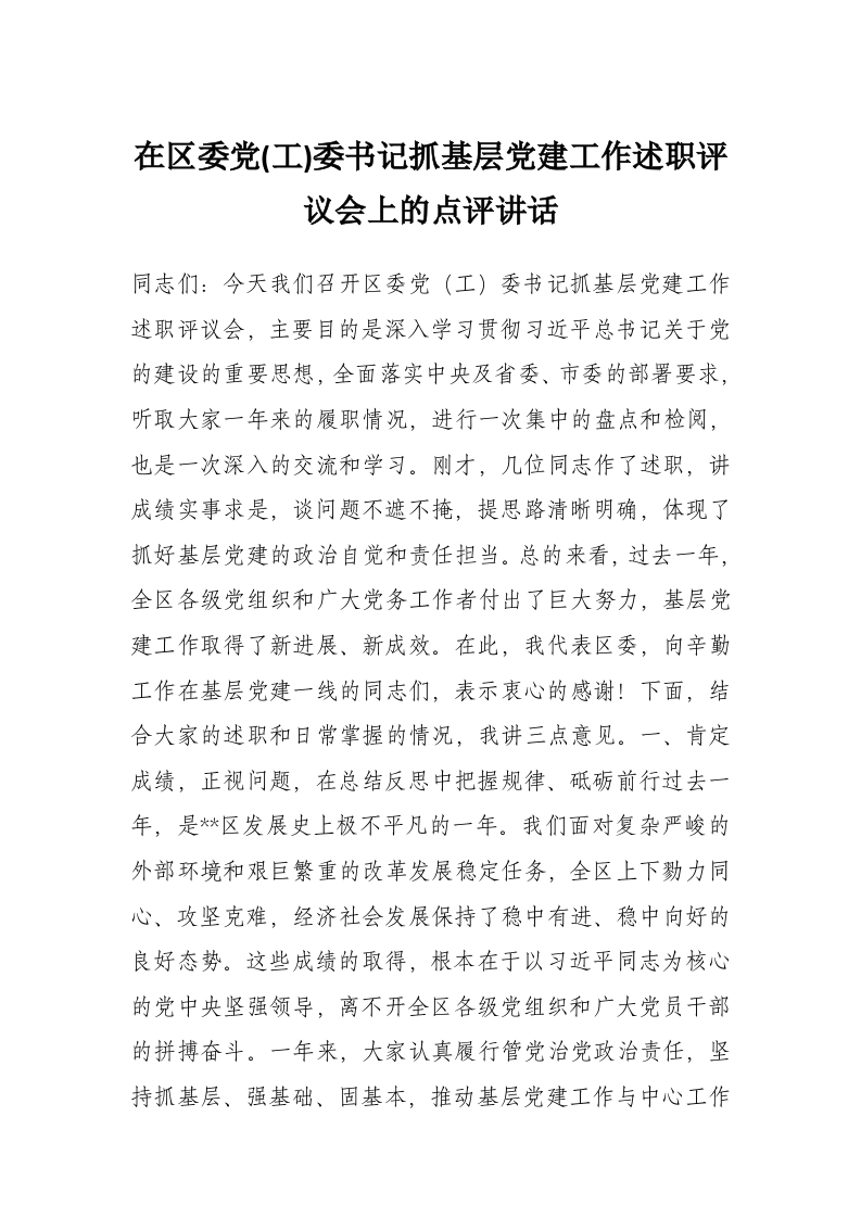 在区委党(工)委书记抓基层党建工作述职评议会上的点评讲话