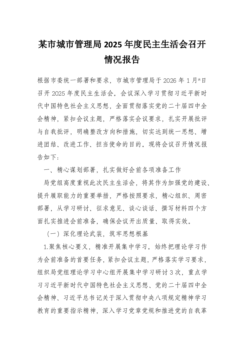 首页写作素材某市城市管理局2025年度民主生活会召开情况报告