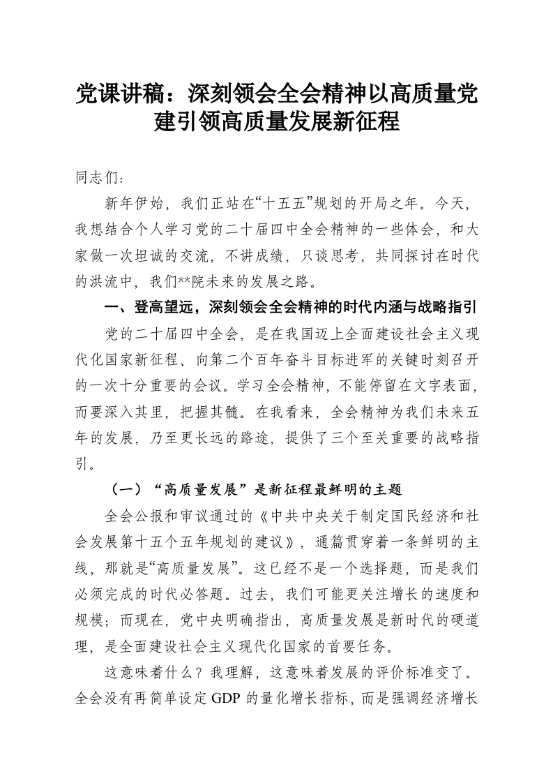 党课讲稿:深刻领会***精神以高质量党建引领高质量发展新征程