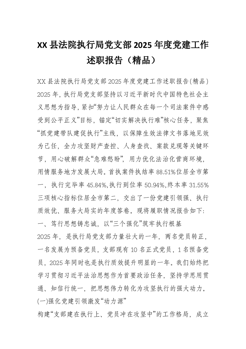 XX县法院执行局党支部2025年度党建工作述职报告(精品)