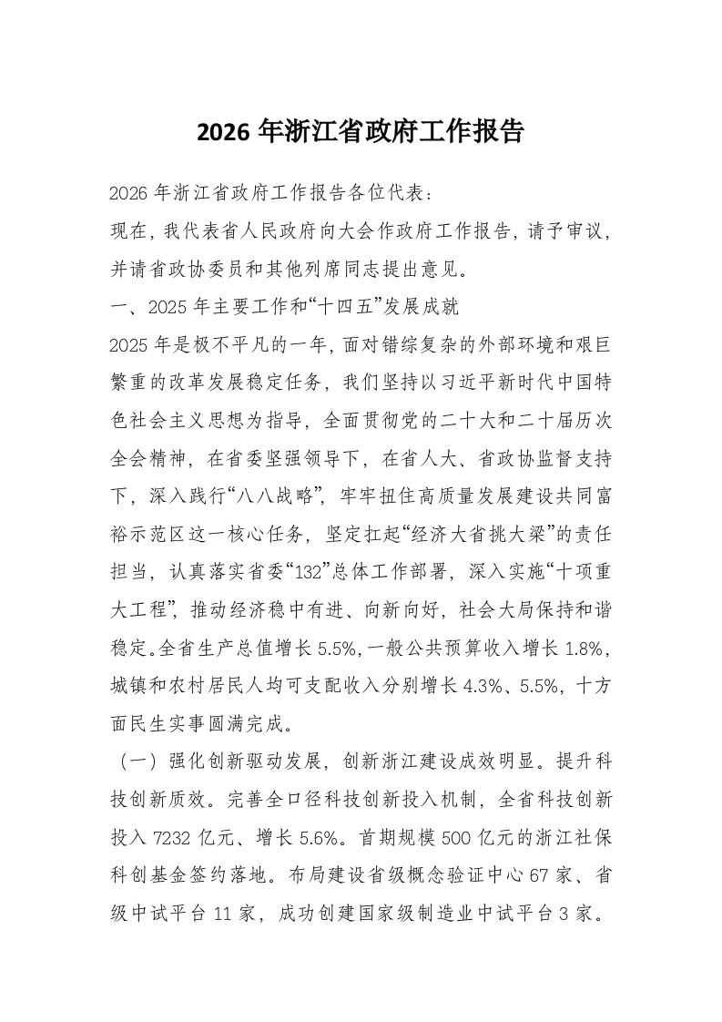 2026年浙江省***工作报告