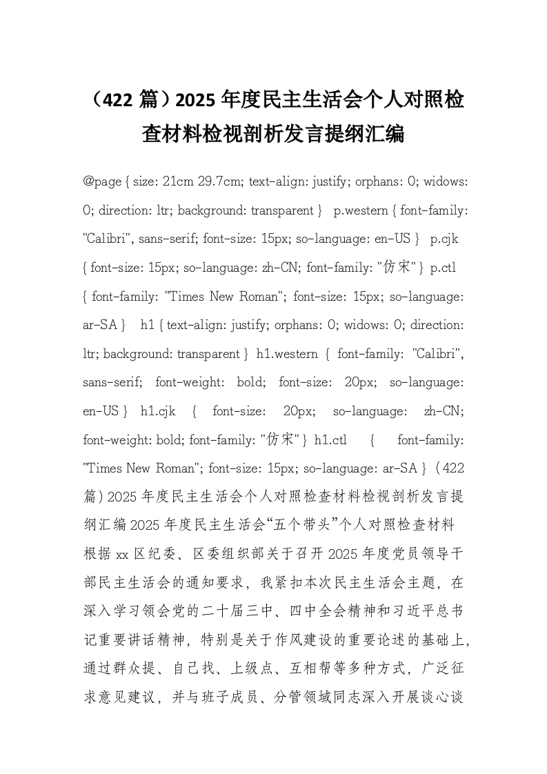 (422篇)2025年度民主生活会个人对照检查材料检视剖析发言提纲汇编