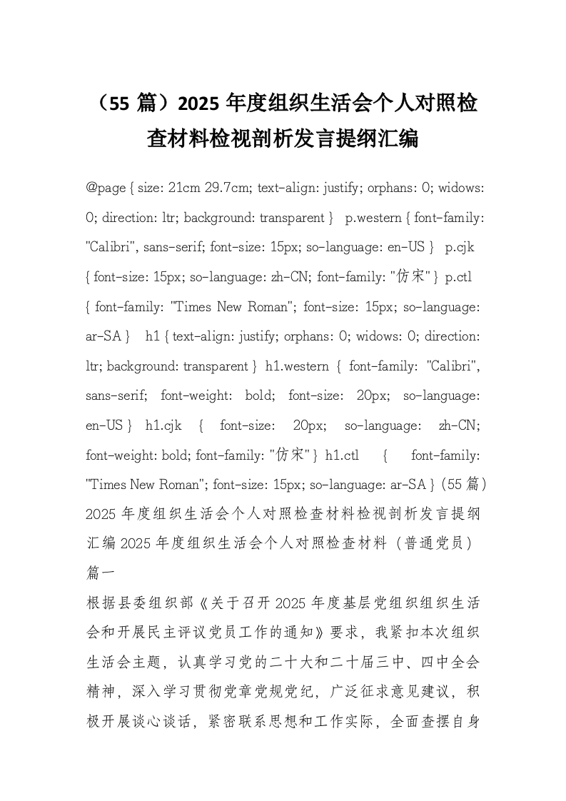 (55篇)2025年度组织生活会个人对照检查材料检视剖析发言提纲汇编