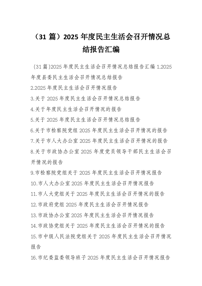 (31篇)2025年度民主生活会召开情况总结报告汇编