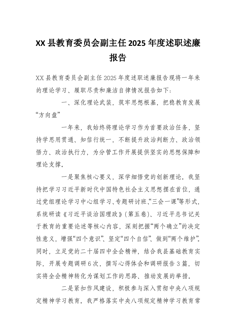首页材料汇编XX县教育委员会副主任2025年度述职述廉报告