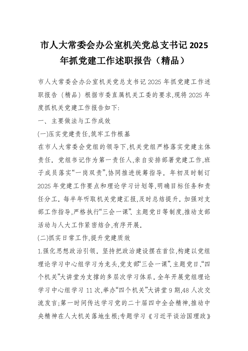 市人大常委会办公室机关党总支书记2025年抓党建工作述职报告(精品)